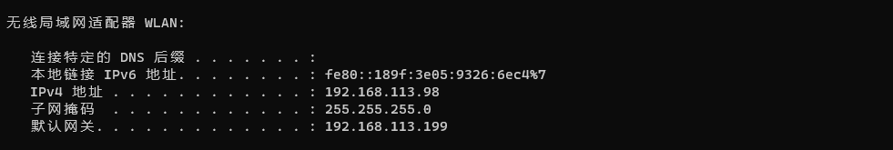 首先将测试手机和电脑连接到同一个WIFI,其中电脑IP:192.168.113.98/24,手机IP:192.168.113.161/24。手机和电脑能相互通信: