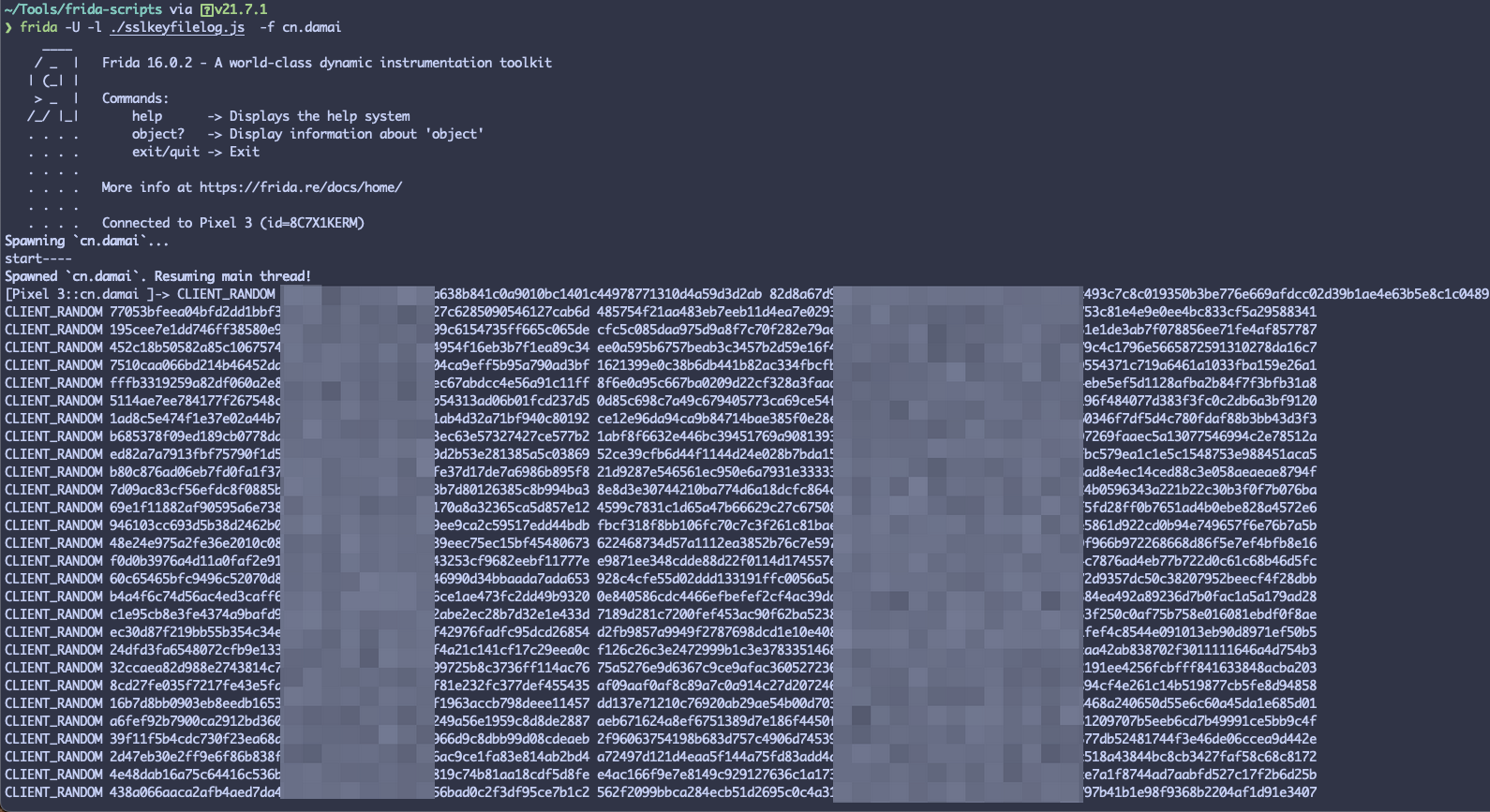 1 | frida -U -l ./sslkeyfilelog.js -f cn.damai |